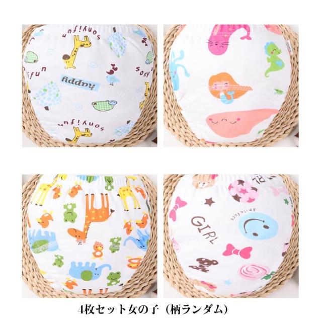 トレーニングパンツ 4枚セット おねしょ パンツ 綿 コットン 4枚組 布パンツ おねしょ対策 トイトレ トレパン 男の子 女の子 キッズ ベビー かわいい 可愛い アニマル 花柄 シンプル 送料無料
