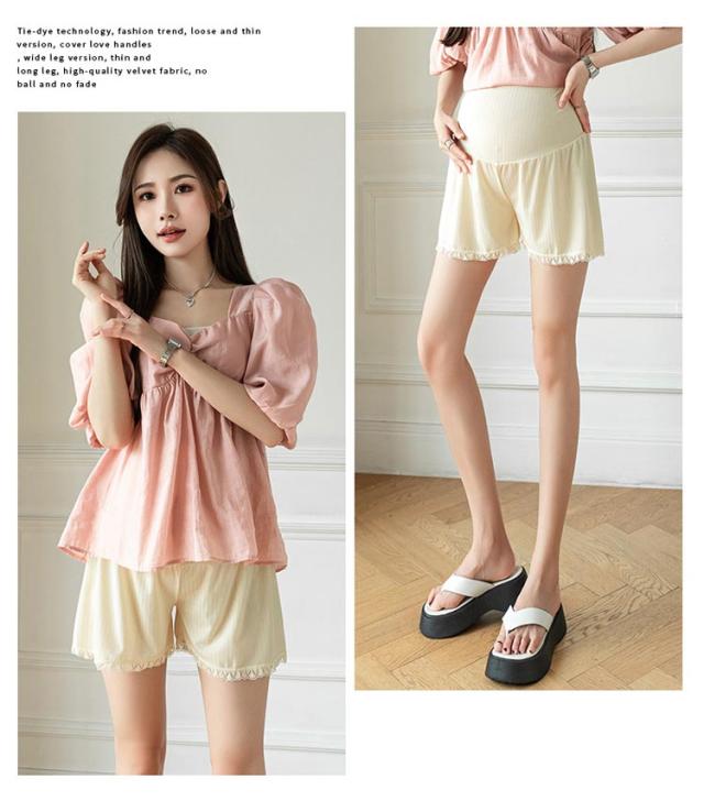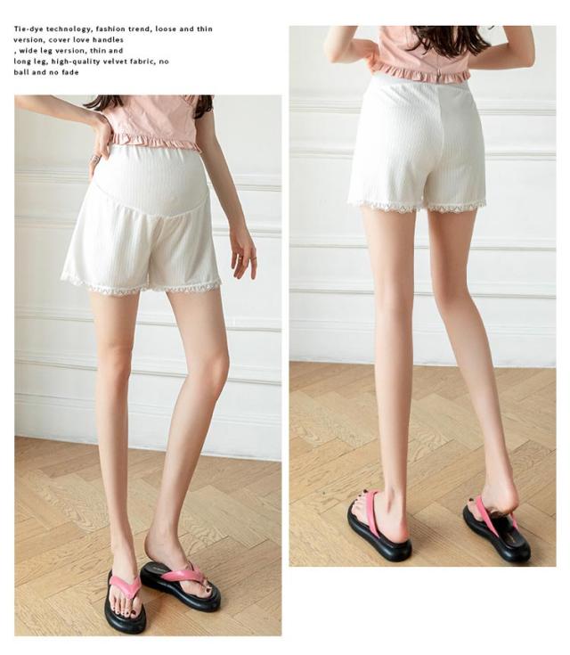 マタニティ パンツ ショートパンツ 接触冷感 ハーフパンツ ショート レース 薄手 ショーパン 短パン 無地 リブ アジャスター パジャマ 部屋着 ズボン 妊婦 ルームウェア ルーム ウェア 夏 春 冷感 マタニティウェア おしゃれ