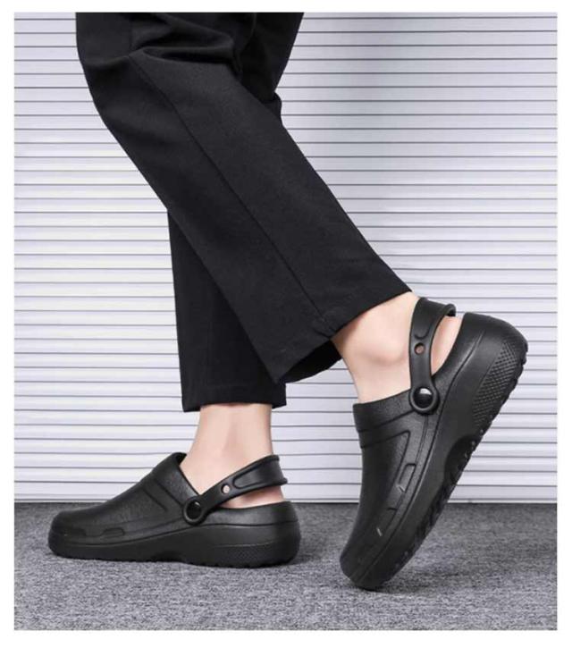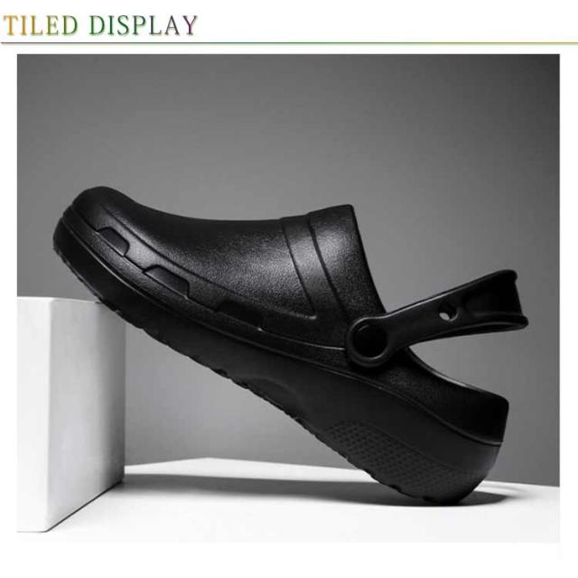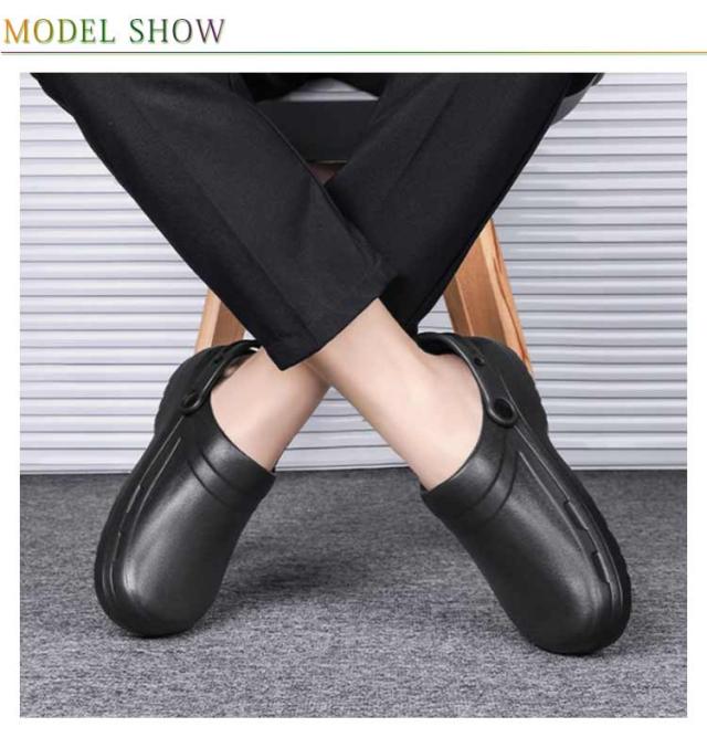 | 軽量設計で足の疲れを軽減するコックシューズです。 水・油に強く、安心して作業ができるので、厨房などで大活躍。 滑り止め性が抜群なソールは濡れた床でも滑りにくいです。 調整可能なストラップデザインで、スリッパとサンダルは簡単に切り替えることができます。 防水性と軽量性があり、快適な一日を演出します。 カフェ、居酒屋、レストランキッチンスタッフに向いている。 | |