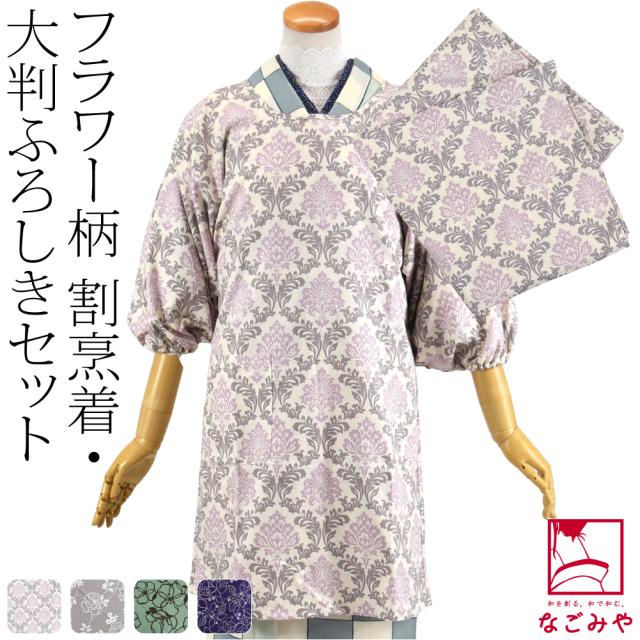 割烹着 風呂敷 セット 通年用 日本製 WASOUL フラワー 割烹着 大判 風呂敷 2点セット 和装 着物用 エプロン 着物包み 持ち運び おしゃれ 大人 レディース 女性10024130