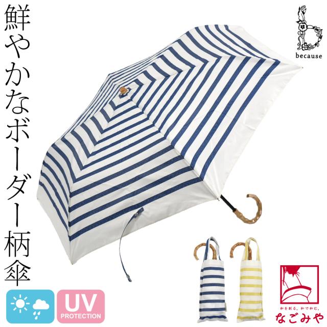 晴雨兼用 日傘 雨傘 通年用 because 折りたたみ傘 ボーダー トートバッグ ミニ 暑さ 熱中症 日焼け 紫外線 UV 対策 撥水 防水 おしゃれ 大人 レディース 女性10024073