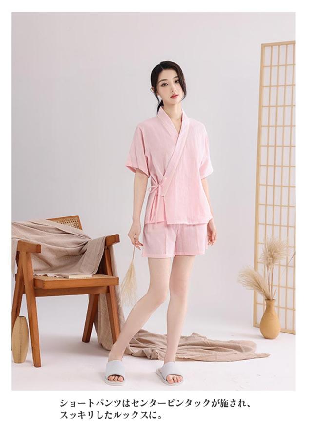 じんべい パジャマ セットアップ じんべえ 着物 和服 寝巻き 綿 ルームウェア 秋 甚平 浴衣 パジャマ レディース コットン ダブルガーゼ 部屋着 ルームウェア 上下セット 夏 涼しい 春 お祭り 花火大会 無地 半袖 短パン 涼しい 上下セット 入院 入院着