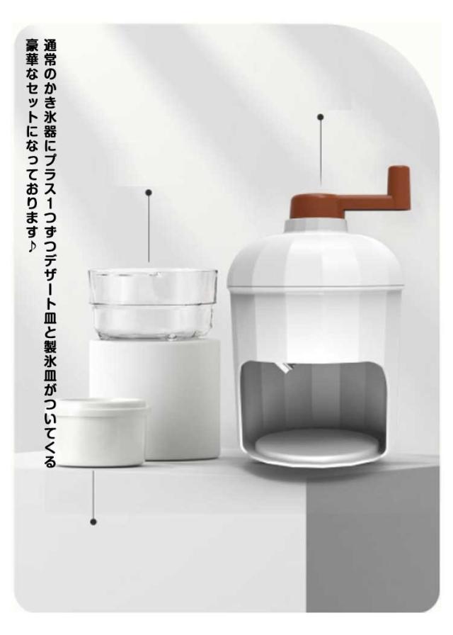 | ハンドルを回すのがとにかく楽しいかき氷器です。【デザート皿と製氷カップ付】 通常のかき氷器にプラス1つずつデザート皿と製氷皿がついてくる豪華なセットになっております♪ ちょっとしたおやつに、お子様のお友達が遊びに来てくれた際など!おうち時間の暮らしをちょっぴり豊かにしてくれるかき氷器です。 | |