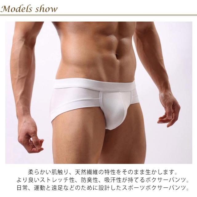 | 3枚セット!柔らかい肌触り、天然繊維の特性をそのまま生かします。より良いストレッチ性、防臭性、吸汗性が持てるボクサーパンツ。日常、運動と遠足などのために設計したスポーツボクサーパンツ。 立体成型パンツで快適でソフトなフィット感。股間もゆったりとした膨らみがあり、自然なもっこりになります。柔らかい二層3D立体ポーチは手で縫われて、パーソナルエリアで快適なお空間を提供して、乾燥な環境になります。 素晴らしい伸縮性。薄手でよく伸び、肌にピタッと吸い付く感じで全体が下から持ち上げられバッチリと固定され、型崩れ等もなし、屈伸時の違和感を抑制します。 幅広のウエストバンドはウエストに食い込みにくく、腹部を締め付けずに、固定し、安定感を与えます。 | |