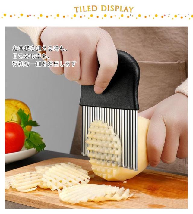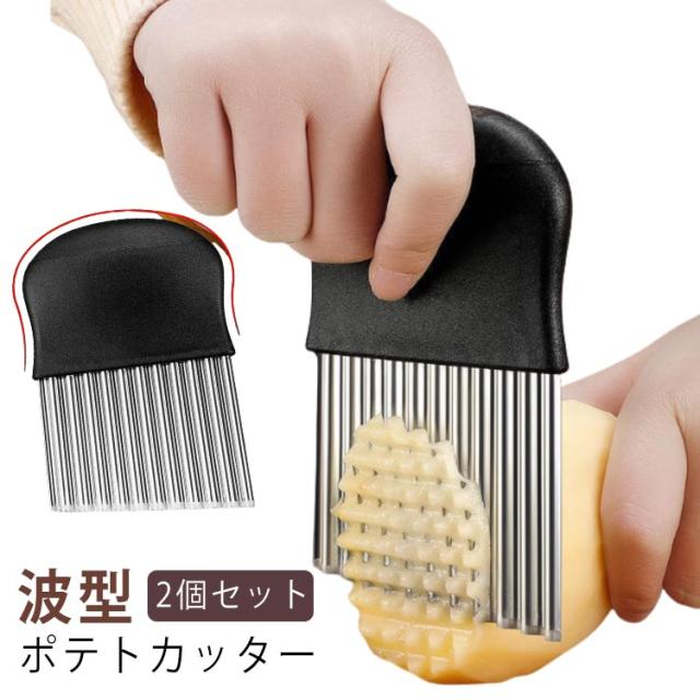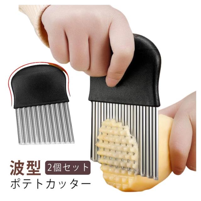 | 2個セット 波型 ポテトカッター お客様を迎える時も、日常の食卓も、特別な一皿を演出します ポテトはもちろん、野菜や果物も美しくカット スムーズな切り心地で、楽にスライスできます | |