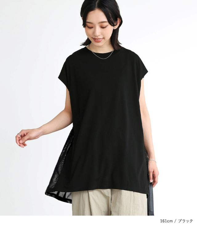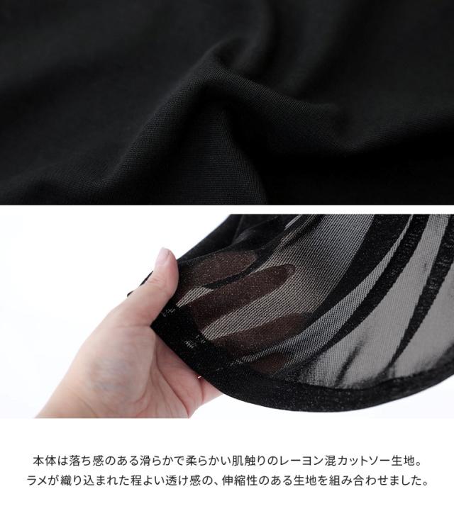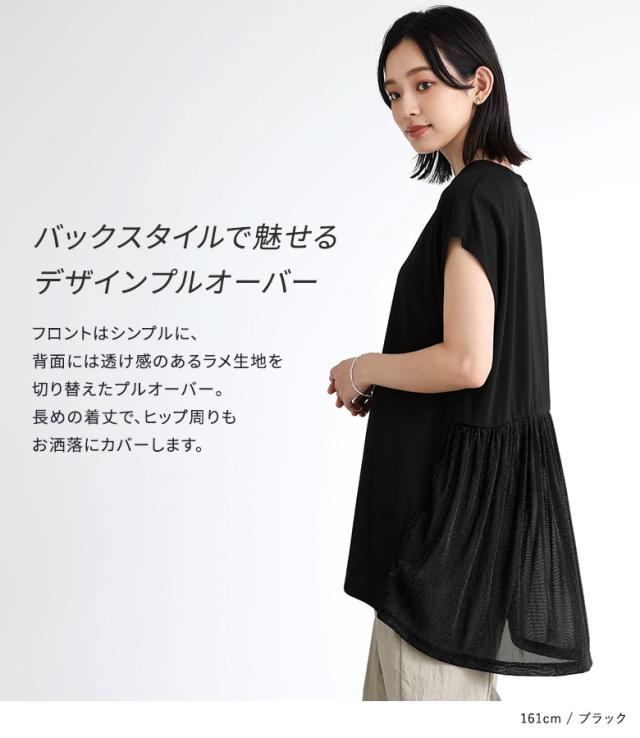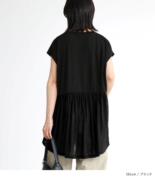 『ラメ切替フレンチスリーブプルオーバー』※メール便可※【10】[トップス カットソー ノースリーブ フレンチスリーブ レディース 夏 シアー ラメ 切り替え 透け感 カジュアル きれいめ 異素材 おしゃれ]