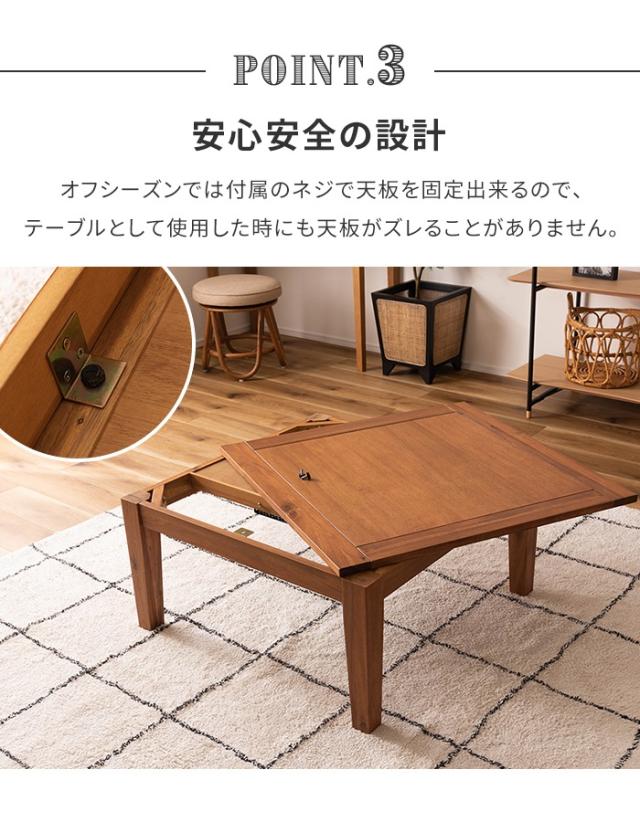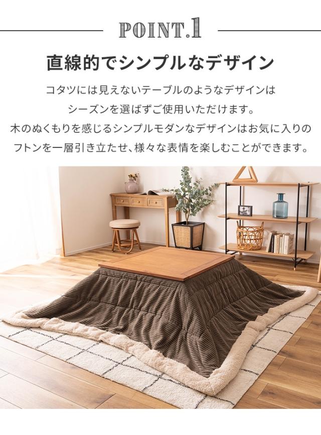 コタツには見えないテーブルのようなデザインはシーズンを選ばずご使用いただけます。