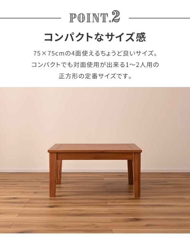 こたつテーブル センターテーブル こたつ 天然木 正方形 幅75 単品 オールシーズン 300W 石英管ヒーター ナチュラル