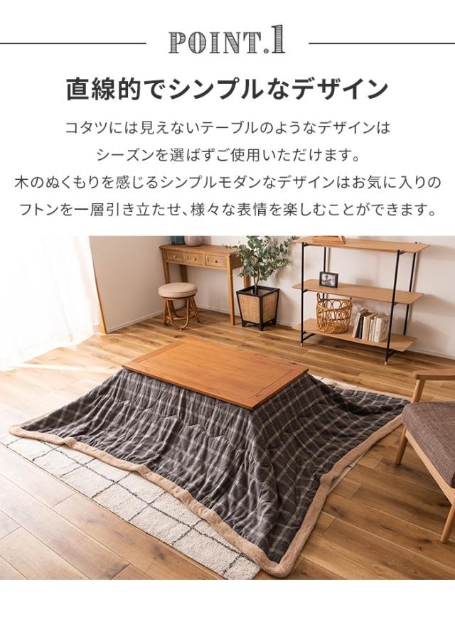 コタツには見えないテーブルのようなデザインはシーズンを選ばずご使用いただけます。