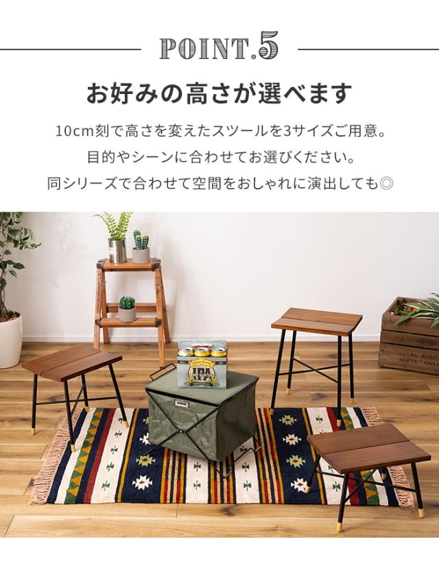 | シンプルなデザインのウッドスツール。 飽きのないすっきりとした印象のスツールです。 3サイズから高さが選べます。 木の温もりを感じるシンプルモダンなデザインは、グリーンにも相性がよく、丁度いいサイズも魅力です。 |