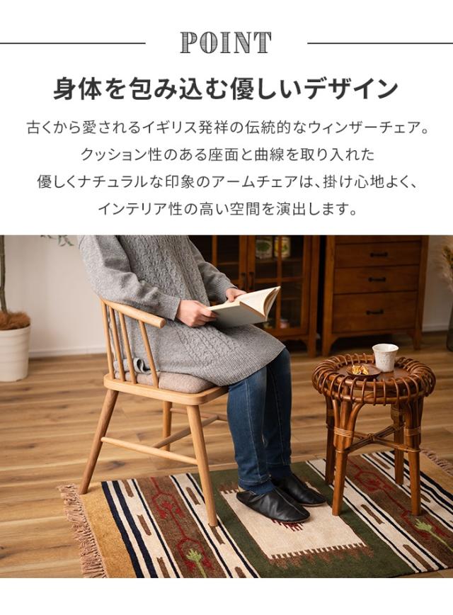 | 身体を包み込む優しいデザインのウィンザーチェア。 古くから愛されるイギリス発祥の伝統的な椅子[ウィンザーチェア] クッション性のある座面と曲線を取り入れた優しくナチュラルな印象のアームチェアは、掛け心地よく、インテリア性の高い空間を演出します。 |
