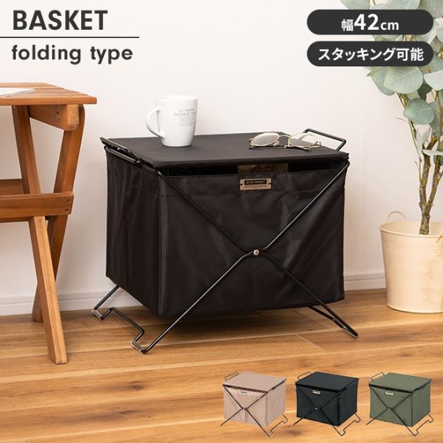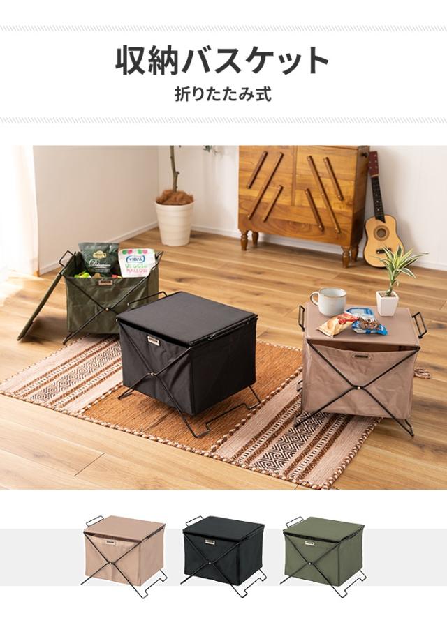 【値下げ】収納ボックス フォールディングバスケット 折りたたみ式 蓋付き 収納ケース サイドテーブル コンパクト 積み重ね可 軽量 スチール