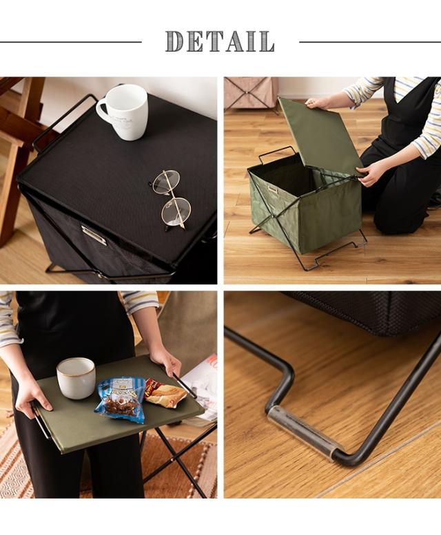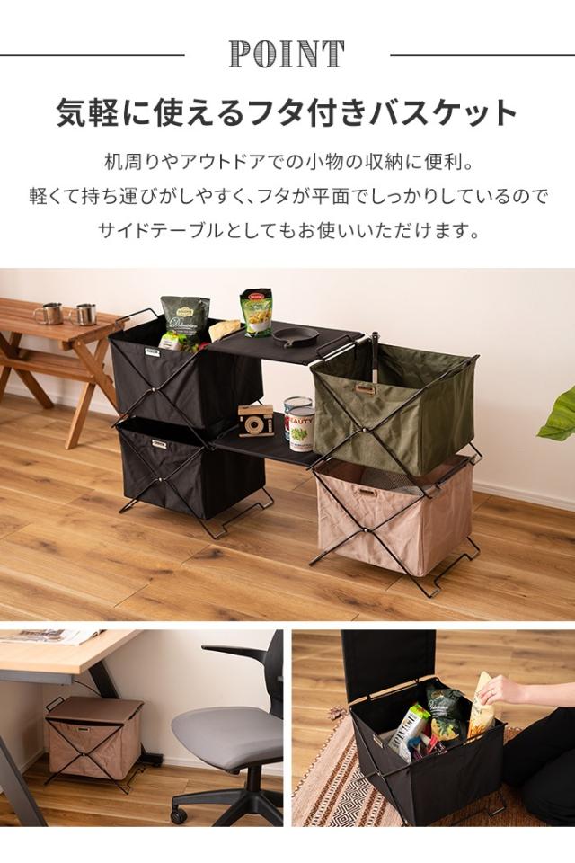 | 手軽に使えるフタ付きバスケット。 机周りやアウトドアでの小物の収納に便利。 軽くて持ち運びがしやすく、フタが平面でしっかりしているのでサイドテーブルとしても。 フタは取り外してトレーとしても使えます。 積み重ねが可能なので省スペースで効率よく収納可能。 取っ手が付いているので持ち運びらくらく。 ボックスとボックスの間にフタを橋渡しすれば収納ラックに早変わり。 フタとボックスの底面にはMDF材を使用。 しっかり安定して収納できます。 折りたたみ式なので使わない時は隙間に収納。 脚にはゴム製の保護材付きで、床への傷防止や滑り止めになり安心。 汚れが付きにくくお手入れ簡単なポリエステル生地。 |