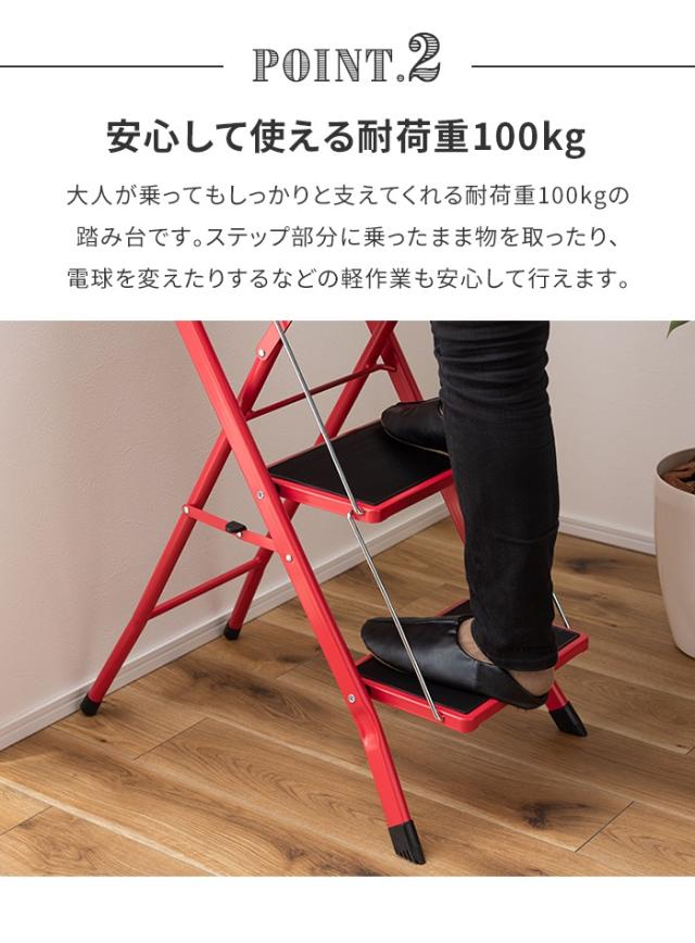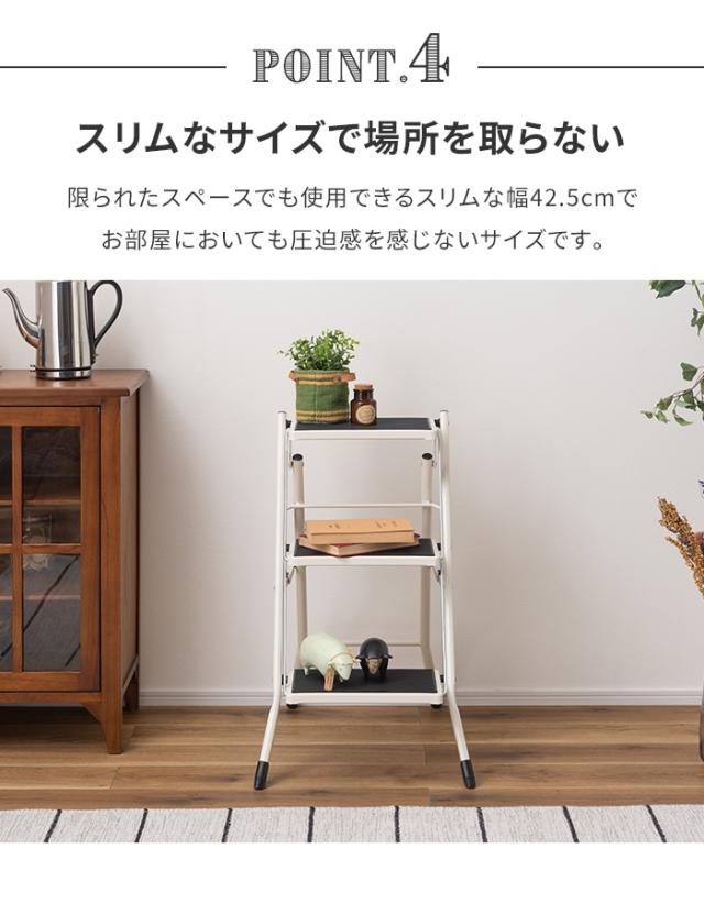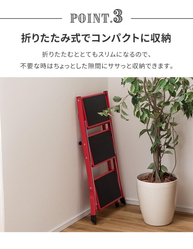 【値下げ】ステップ台 踏み台 脚立 3段 折りたたみ式 ステップスツール シンプル おしゃれ コンパクト 軽量設計 グリップ付き 便利