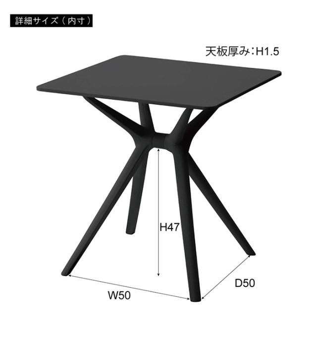 | デザイナーズ家具のような、置いてあるだけで絵になる品のある佇まいのテーブル。 脚がクロスしているように見える、ユニークで特徴的なデザイン。 ダイニングテーブルとしてはもちろん、リビングに置いてワークスペース兼カフェスペースを作ってみたり、一人暮らしやカップルのダイニング兼ワークテーブルとして使ってみたり、様々な用途で使えるテーブル。 ポリプロピレン製なので耐水性が高くお手入れも簡単。 (長期間直射日光のあたる場所に放置した場合、色抜けやヒビ割れ等の劣化の原因となりますので、ご使用の際はご注意ください。) 六角レンチ等の付属工具が全て入った組立品。 天板と脚を取り付けるだけの簡単組立。 |
