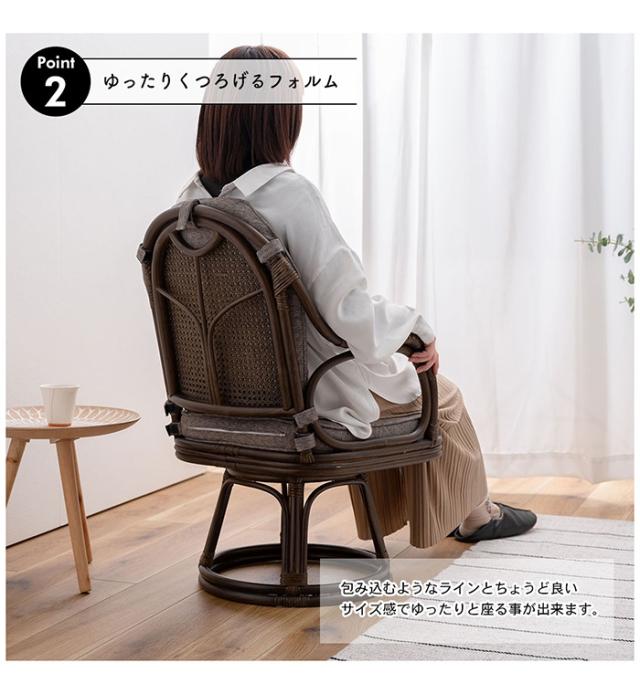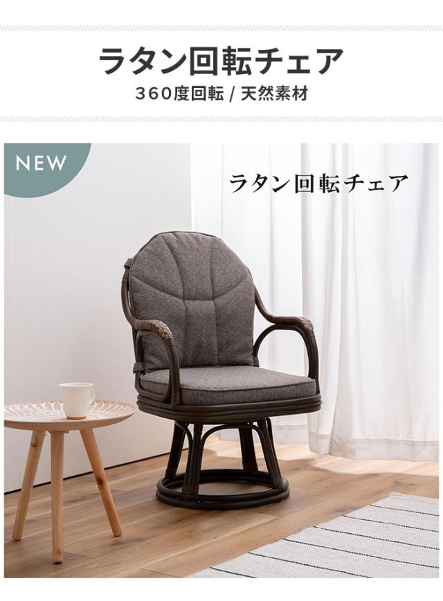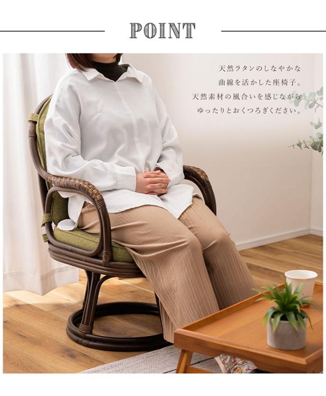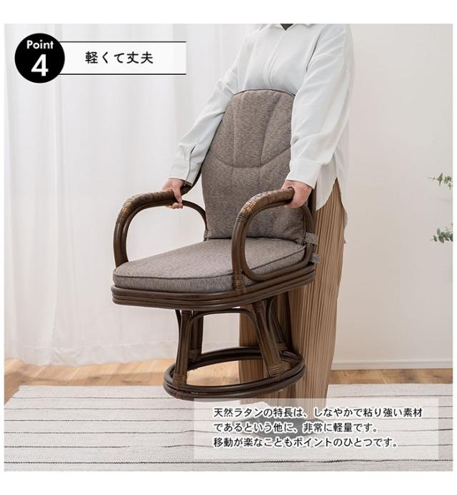 【値下げ】高座椅子 回転椅子 ラタンチェア 籐家具 クッション 背もたれ 360度回転 クッション取り外し可能 天然素材 アジアン おしゃれ