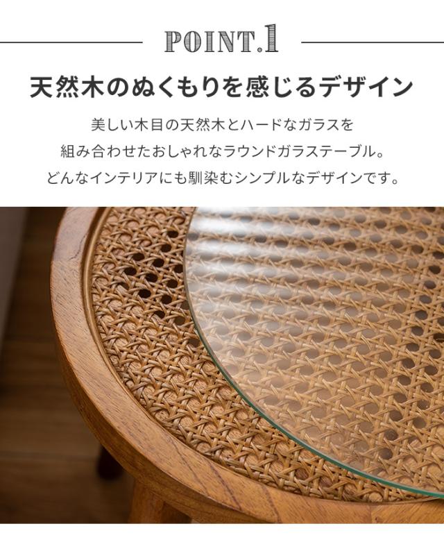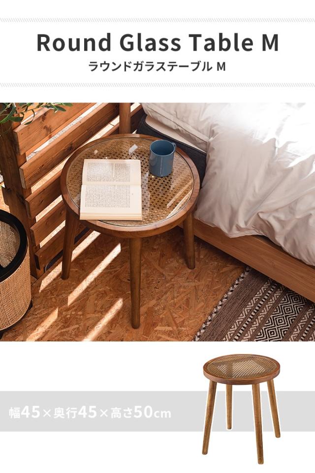 キーワード: サイドテーブル ガラステーブル ラウンドテーブル 丸型 円形 おしゃれ ナチュラル 木製 天然木 ラタン ガラス天板 ソファサイド ナイトテーブル 木製テーブル 丸テーブル ラウンドガラステーブル ミニテーブル カフェテーブル コーヒーテーブル デザインテーブル リビング ベッドサイド 寝室 書斎 組立式