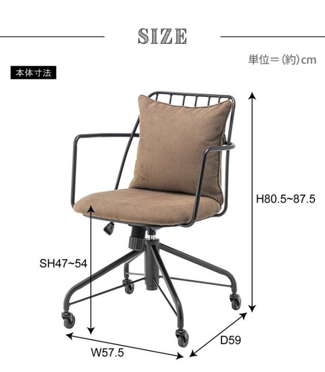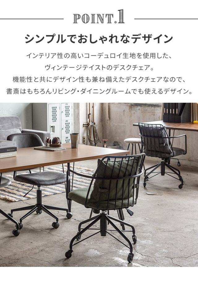 インテリア性の高いコーデュロイ生地を使用した、ヴィンテージテイストのデスクチェア。