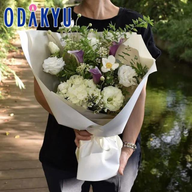 お悔やみに。リシアンサスやカラーなど淡い色を合わせたブーケ