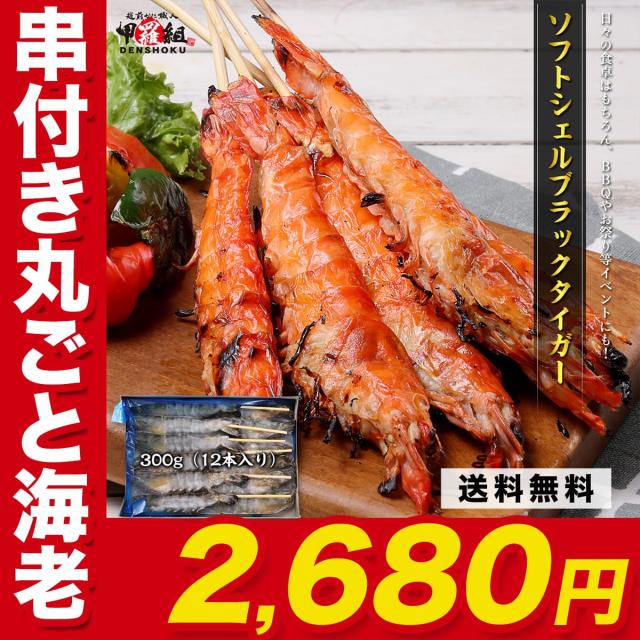 ソフトシェルブラックタイガー 串付き 300g 12本入り えび 海老 エビ 串 串焼き 海鮮 BBQ 串揚げ FF agesugi_sgu e_bt