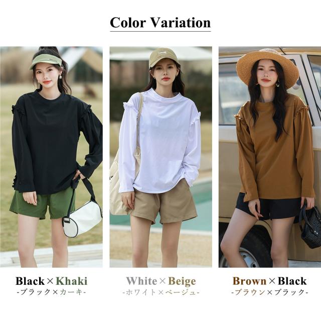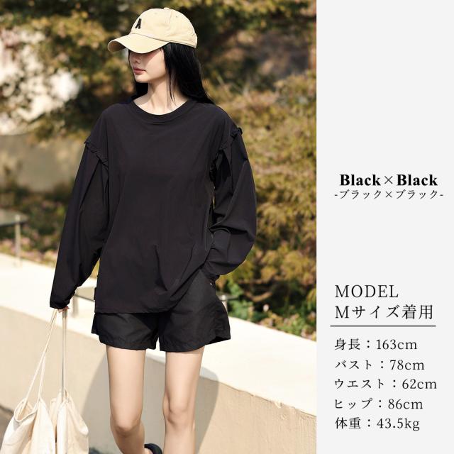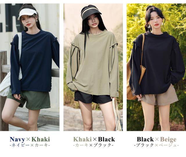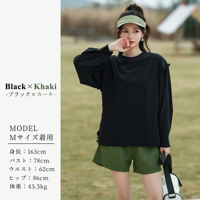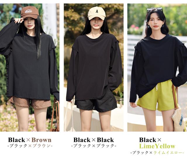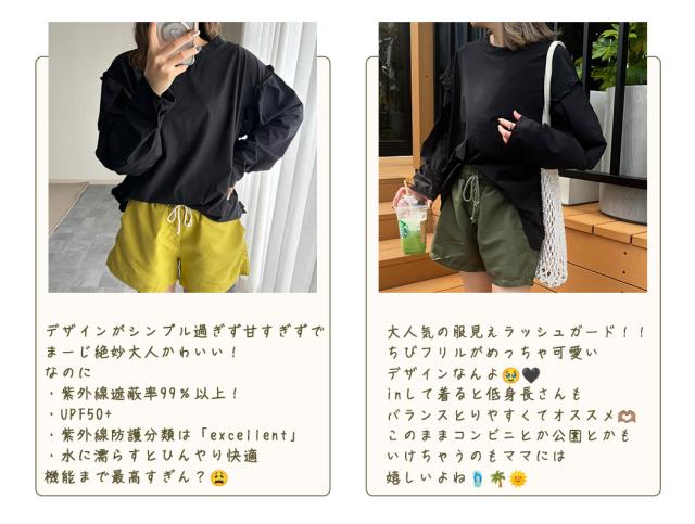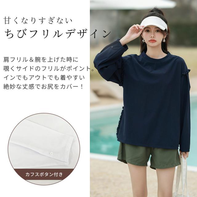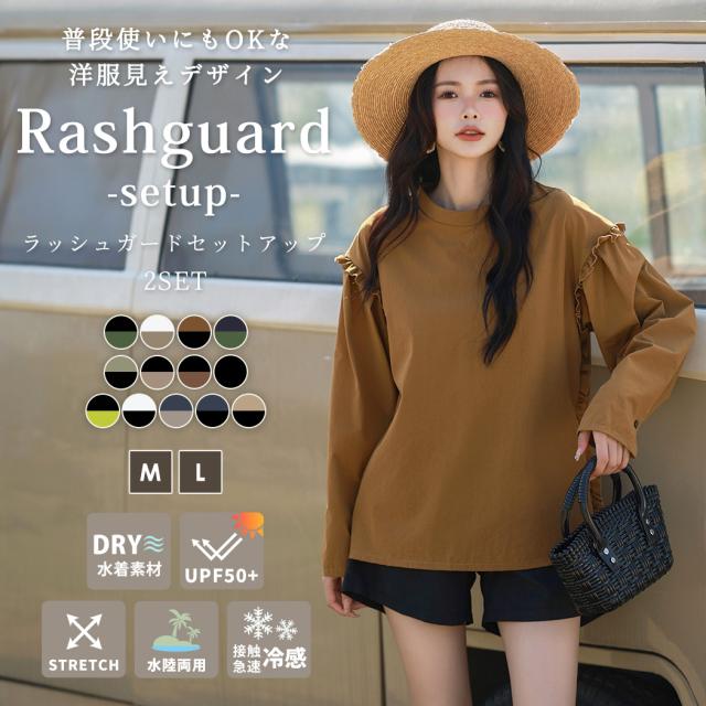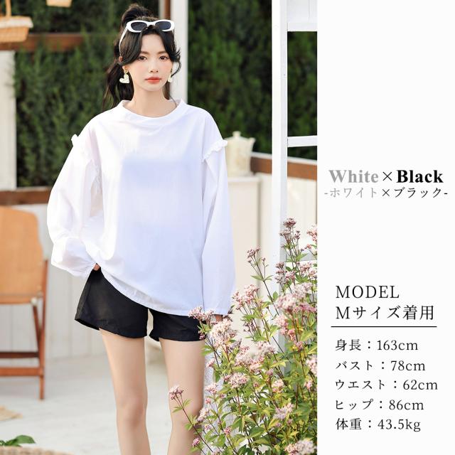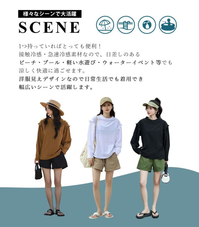 接触冷感 UVカット率 99%以上 ラッシュガード レディース 長袖 水着体型カバー 台形パンツ セットアップ 水陸両用 UPF50+ おしゃれ かわいい ひんやり フードなし 薄手 黒 白 二の腕 ウエスト お尻 太もも カバーアップ 紫外線対策
