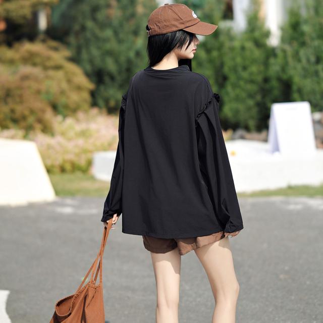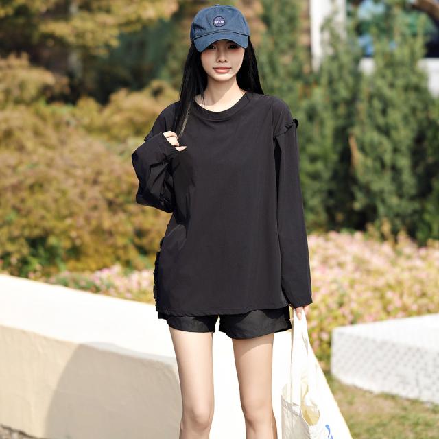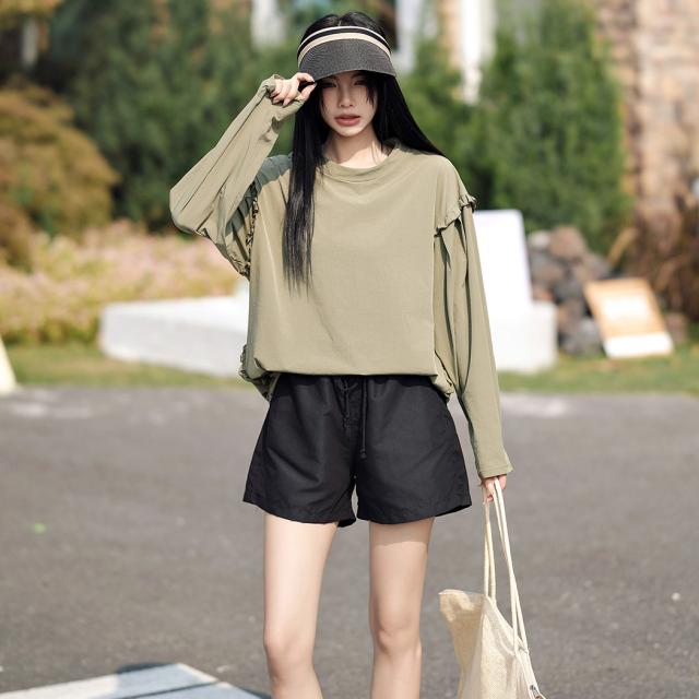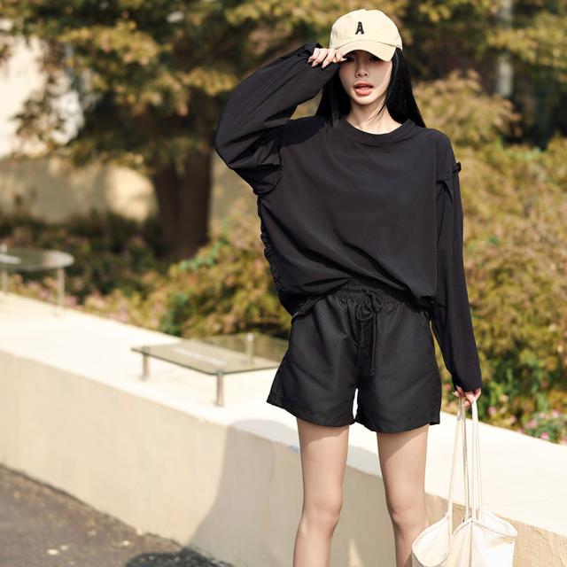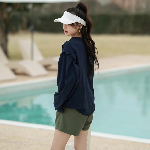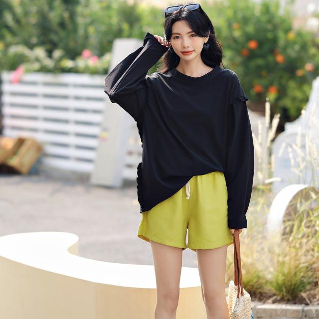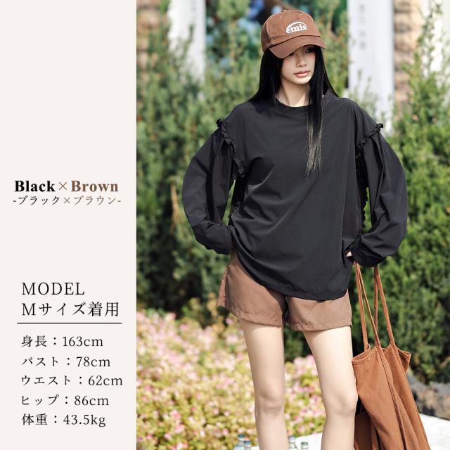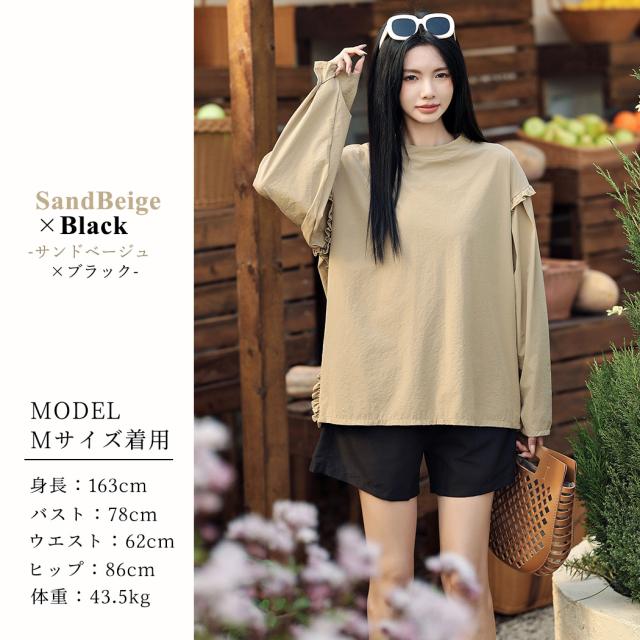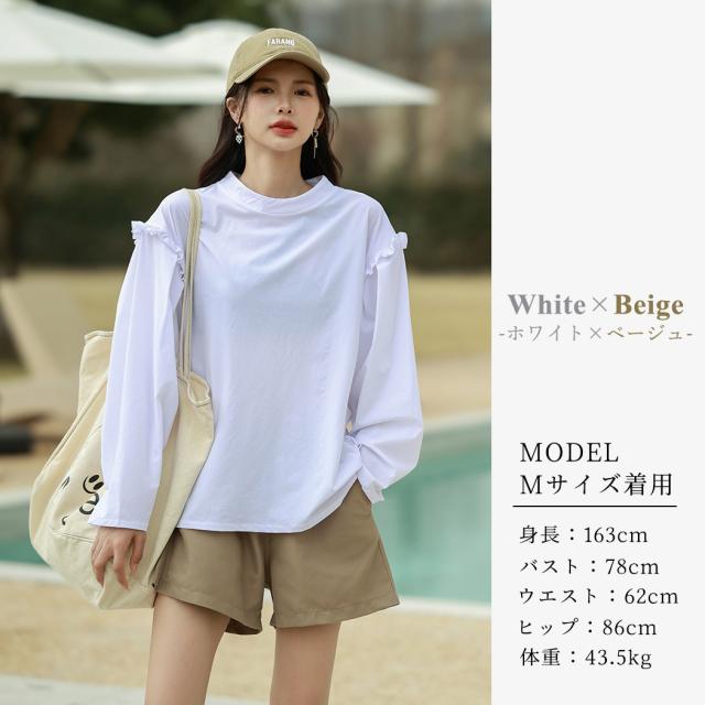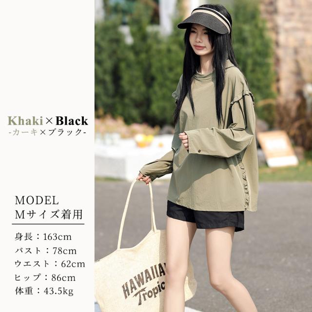 接触冷感 UVカット率 99%以上 ラッシュガード レディース 長袖 水着体型カバー 台形パンツ セットアップ 水陸両用 UPF50+ おしゃれ かわいい ひんやり フードなし 薄手 黒 白 二の腕 ウエスト お尻 太もも カバーアップ 紫外線対策