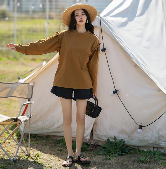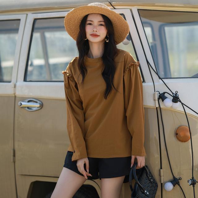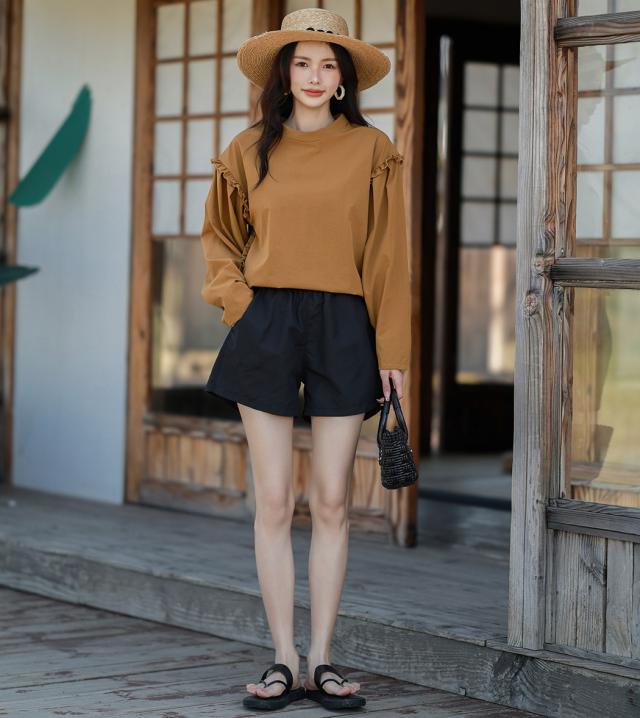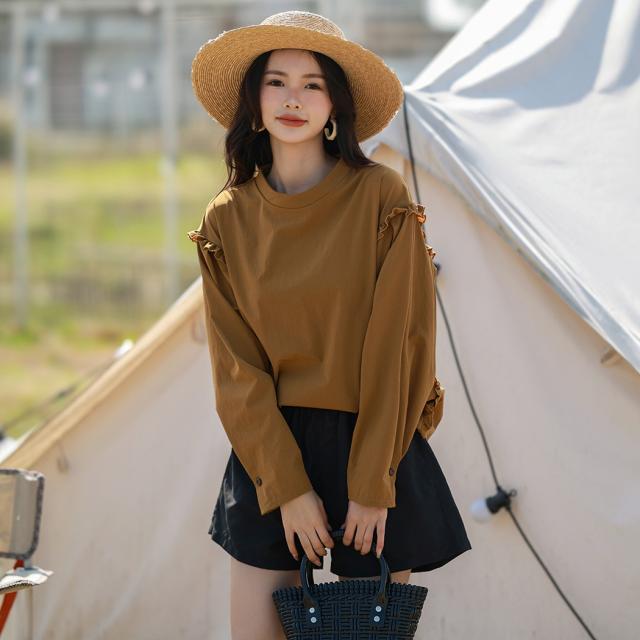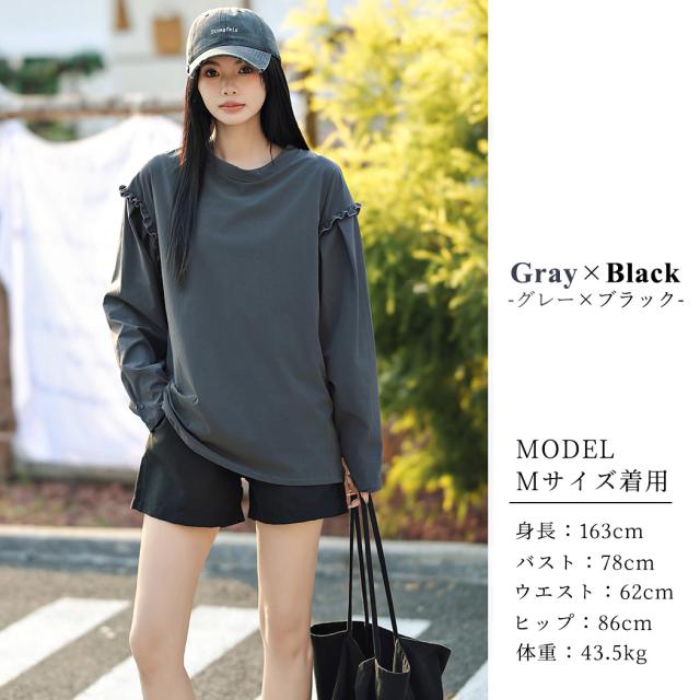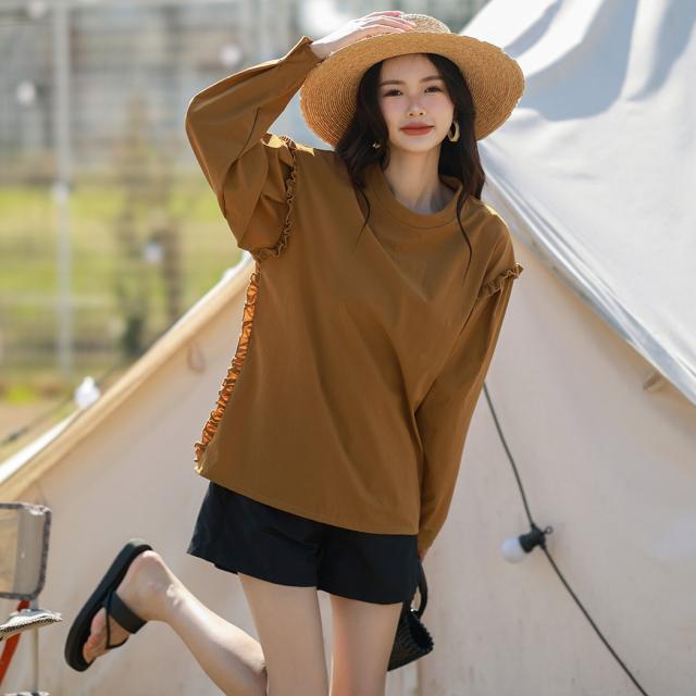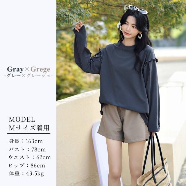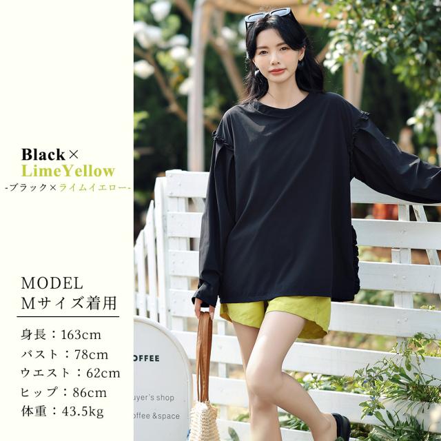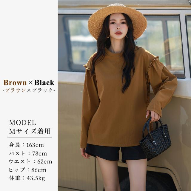 肩フリル&腕を上げた時に覗くサイドのフリルがポイント。
