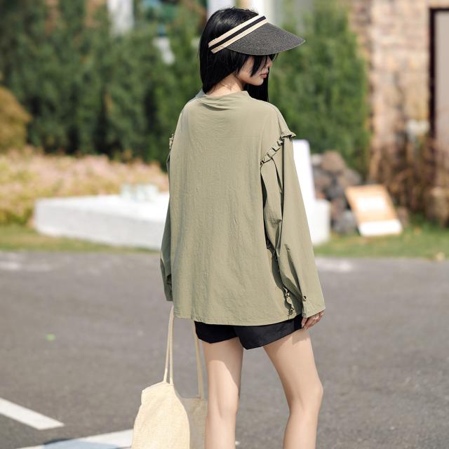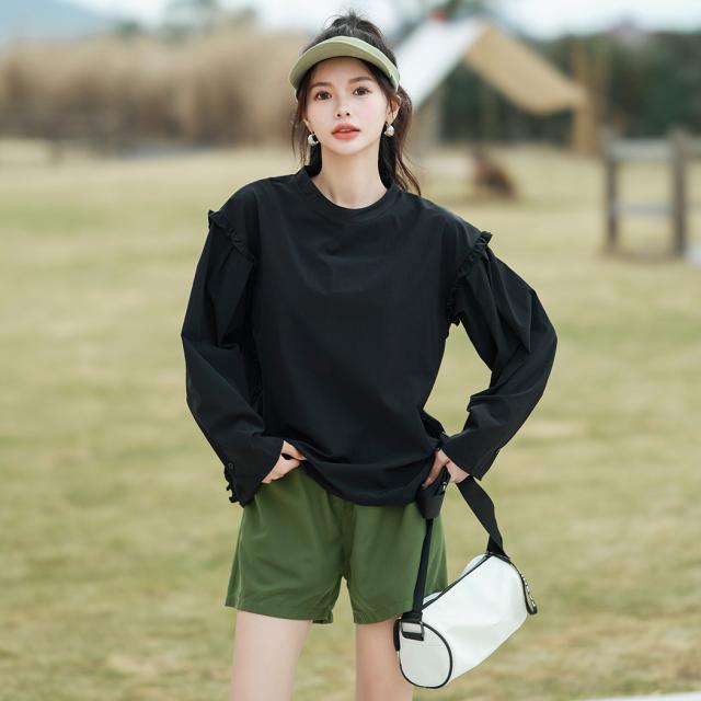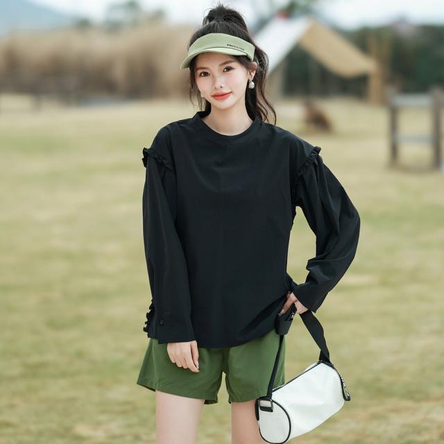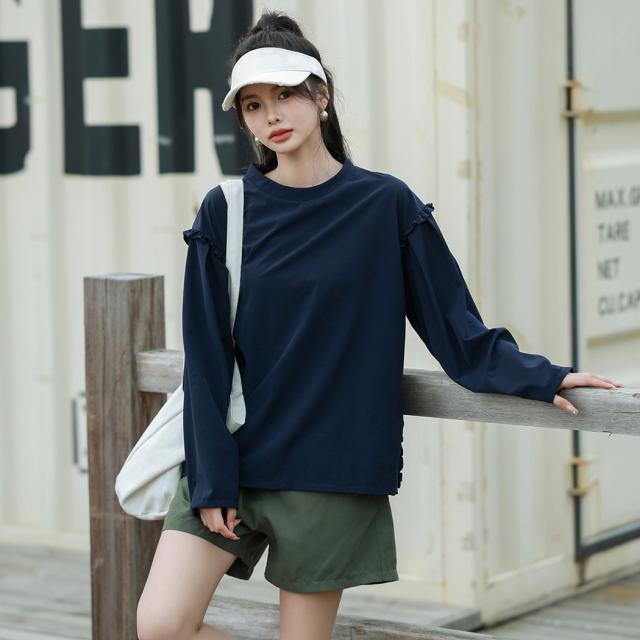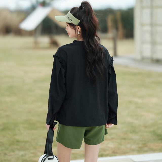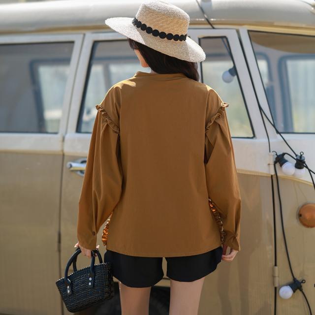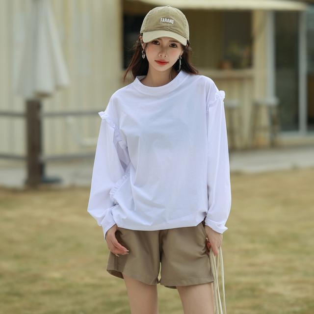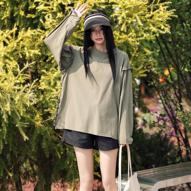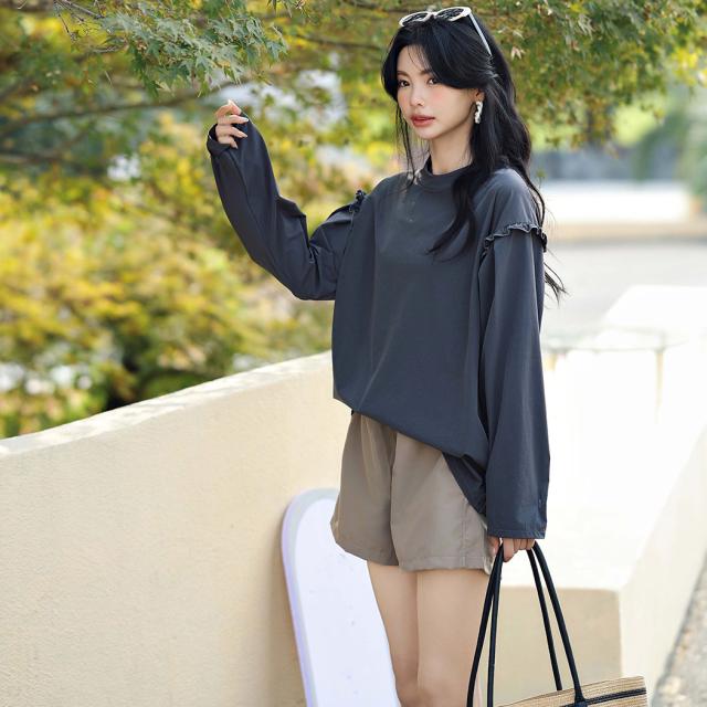 肩フリル&腕を上げた時に覗くサイドのフリルがポイント。