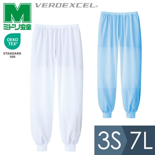 ミドリ安全 食品産業向け作業服 通年 ベルデクセル 男女共用 スラックス F12B ホワイト・ブルー 3S〜7L