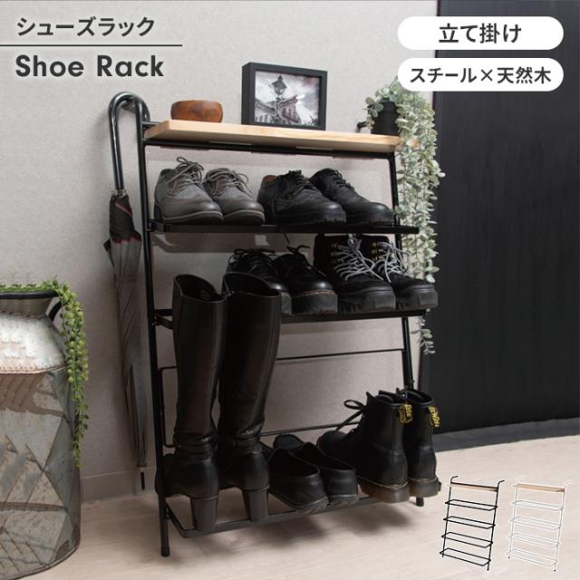 【値下げ】シューズラック 靴箱 木製 立て掛ける スチール脚 小物置き ディスプレイ 省スペース シンプル スタイリッシュ おしゃれ 収納