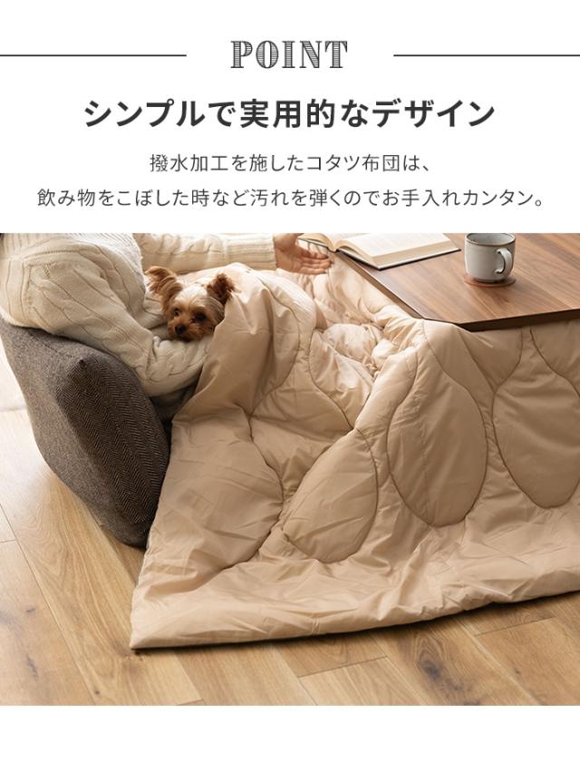 撥水加工を施したコタツ布団は飲み物をこぼした時など汚れを弾くのでお手入れカンタン。