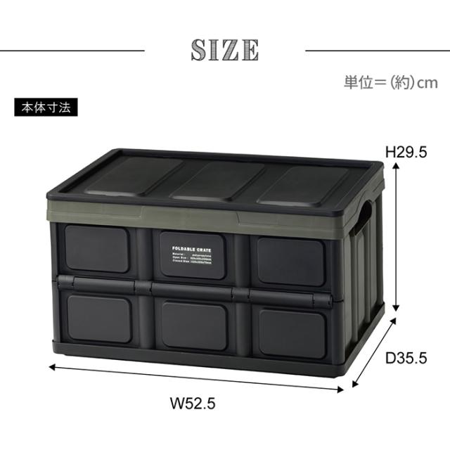 キャンプの収納や、インテリアの収納として使うことができるフォルダブルクレート。