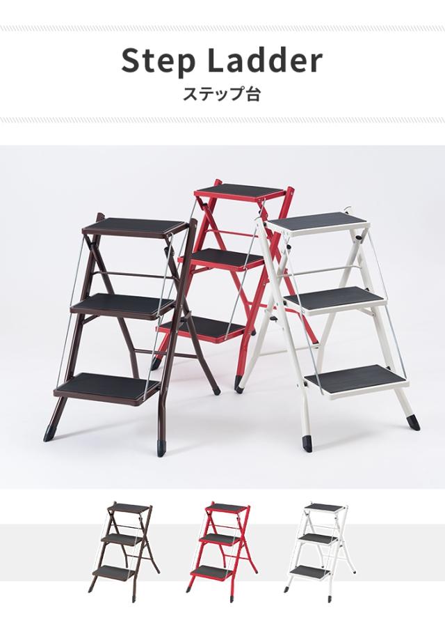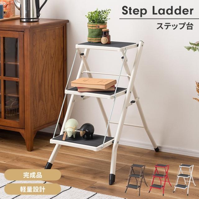 【値下げ】ステップ台 踏み台 脚立 3段 折りたたみ式 ステップスツール シンプル おしゃれ コンパクト 軽量設計 グリップ付き 便利