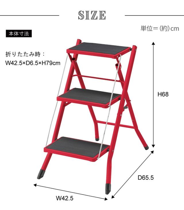 | 幅42.5×奥行65.5×高さ68cm (折りたたみ時:幅42.5×奥行6.5×高さ79cm) |