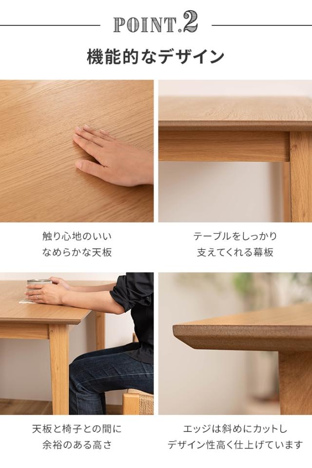 木目の表情を活かした天板が食卓に彩りを与えてくれます。