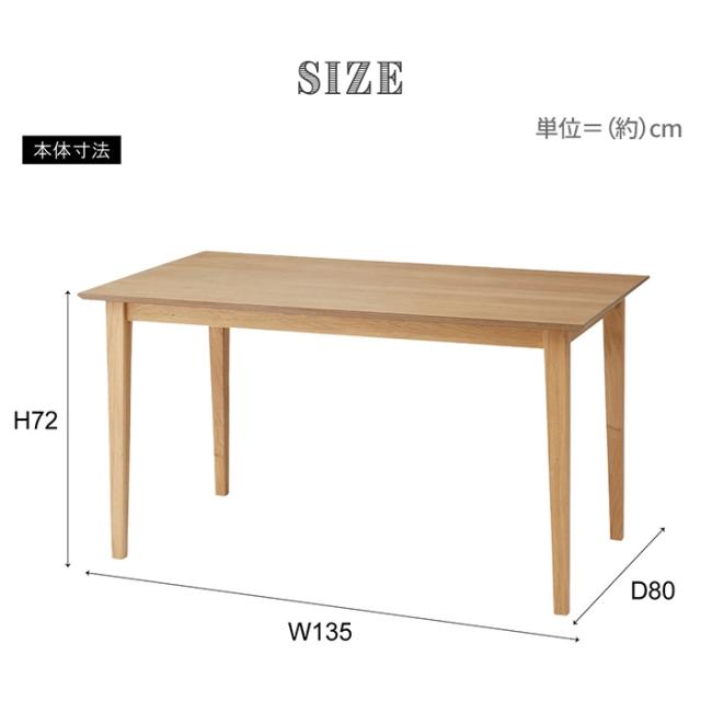 キーワード: ダイニングテーブル テーブル 食卓机 北欧 おしゃれ シンプル ナチュラル 木製 天然木 省スペース かわいい 幅135cm 高さ72cm 4人掛け カフェテーブル シンプルテーブル フリーテーブル 木製テーブル 食卓 幅135 奥行80 高さ72 省スペース 木目調 天然木 4人用 四角 家具 オーク材 ダイニング
