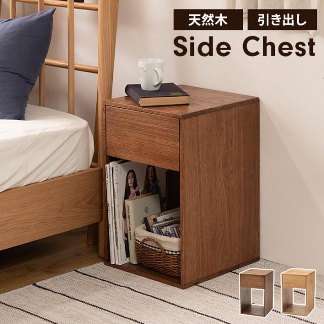 【値下げ】サイドチェスト サイドラック 木製 天然木 引き出し付き 収納棚 チェスト ラック ブックスタンド ナチュラル おしゃれ 北欧風