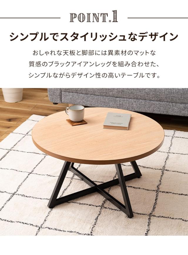 リビングテーブル ラウンドテーブル ローテーブル 丸型 円形 木製 スチール脚 アジャスター付 おしゃれ モダン ナチュラル 家具