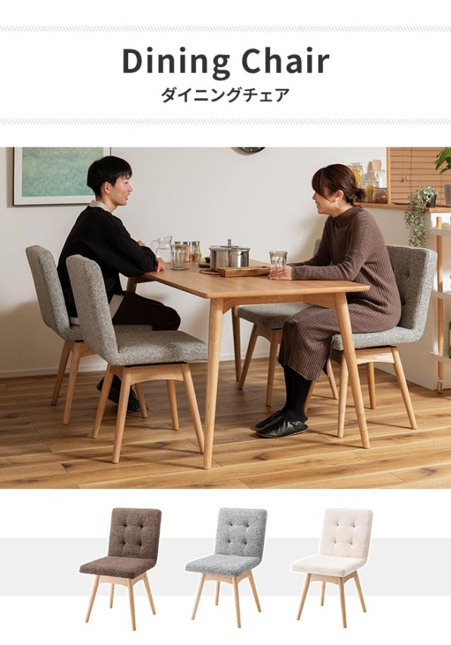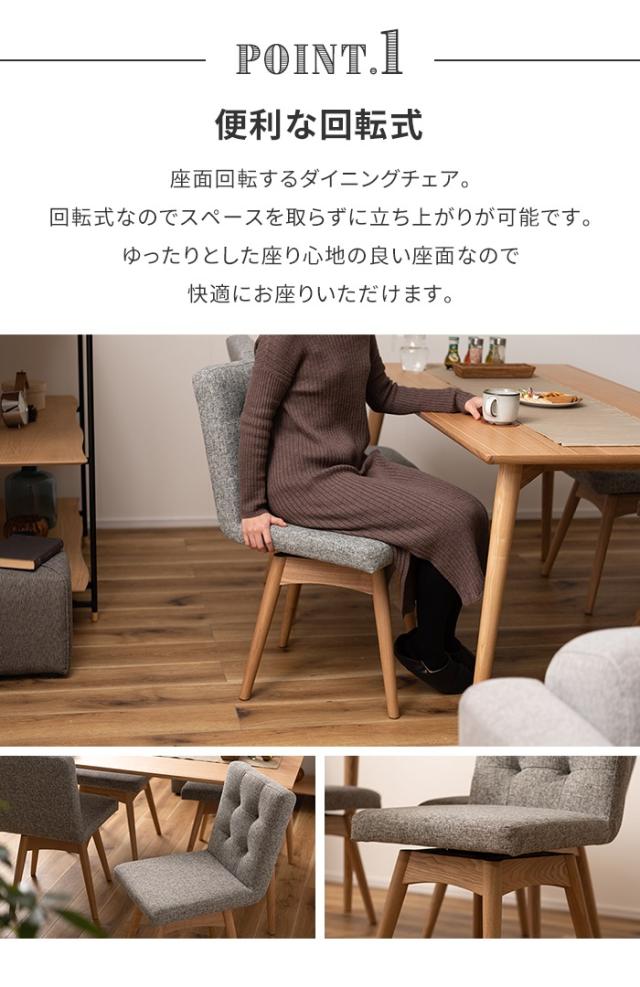 | 座面回転するダイニングチェア。回転式なのでスペースを取らずに立ち上がりが可能です。 天然木とファブリックのやさしい質感でナチュラルな空間を演出します。 |