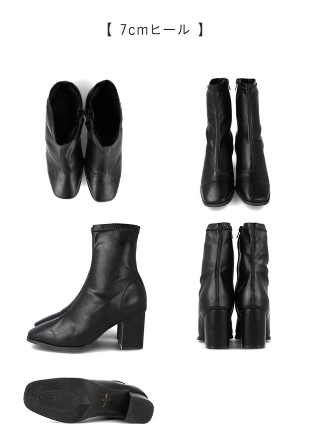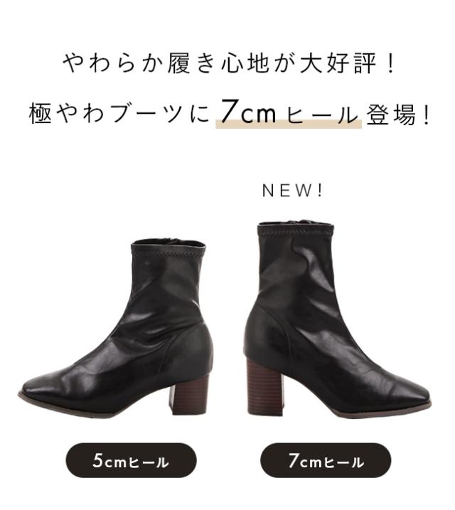 ブーツ レディース ショートブーツ やわらかい 痛くない 厚底ブーツ 歩きやすい スクエアトゥ 黒 極やわブーツ 送料無料