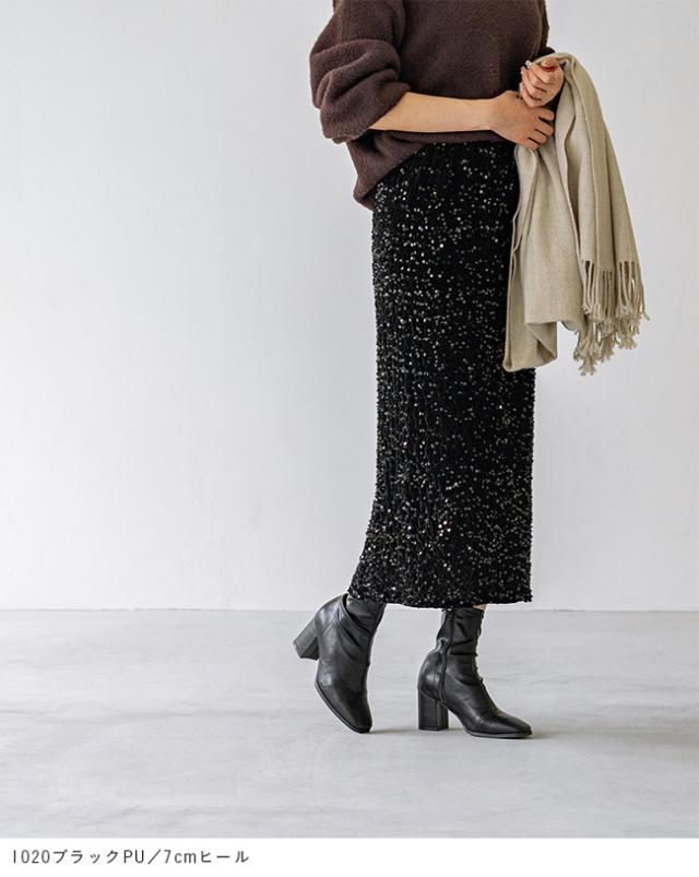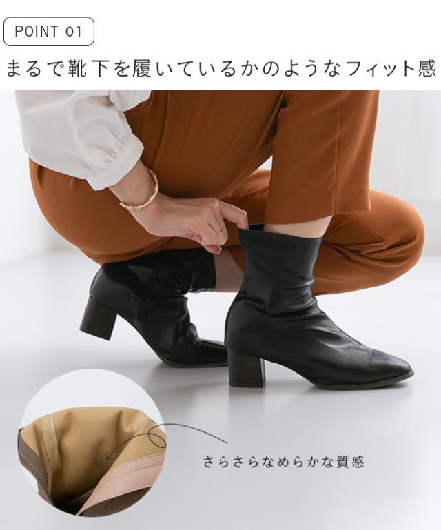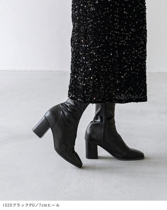 足のラインに沿ってきゅっとフィットするように細かく調整を重ねたシルエット。ブーツが華奢みえに補正してくれます。