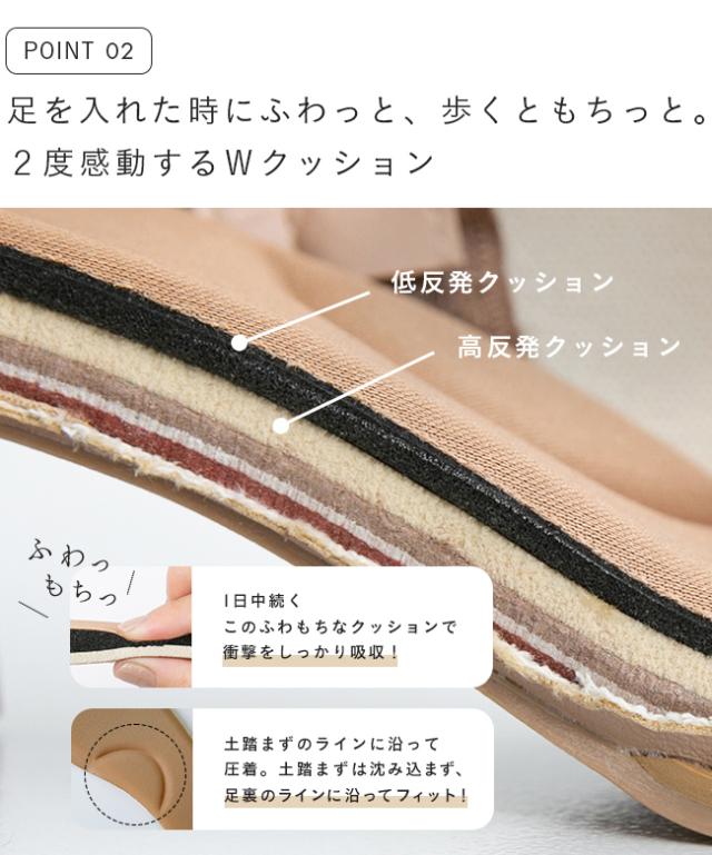 wellegで1番人気なバレエシューズに使っているふわっと足裏を包み込む「低反発クッション」を重ねた欲張りWクッションインソールを採用。
