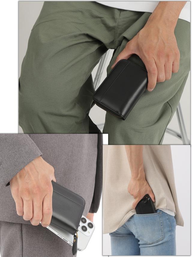 セキュリティー:(中)スキミング防止機能付帯 (外)ICカードがポケットに入れたまま読み取れます。(外ポケットはスキミング防止機能なし)