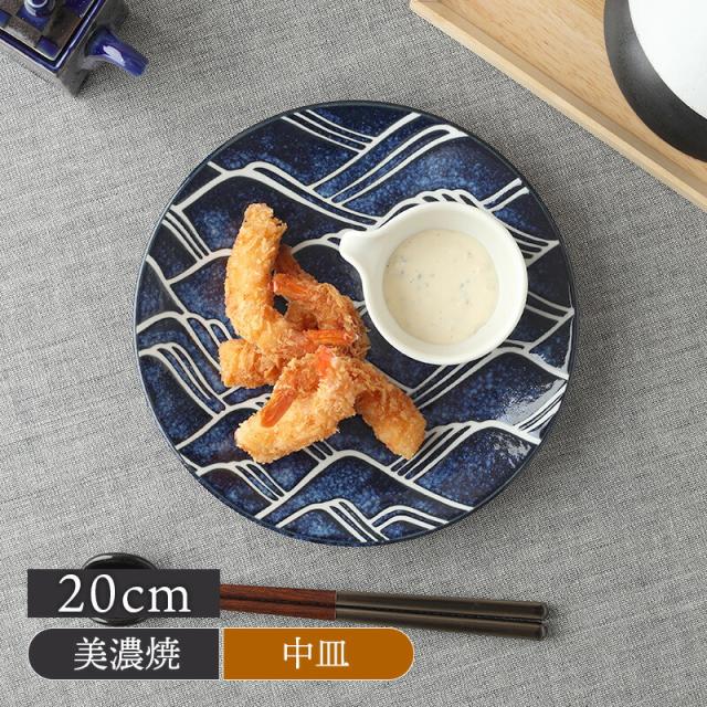 和皿 20cm グレートウェーブ 光琳波 和食器 磁器 日本製 美濃焼 おしゃれ 和モダン シンプル シック プレート お皿 皿 食器 中皿 取り皿 ケーキ皿 サラダ皿 デザートプレート パン皿
