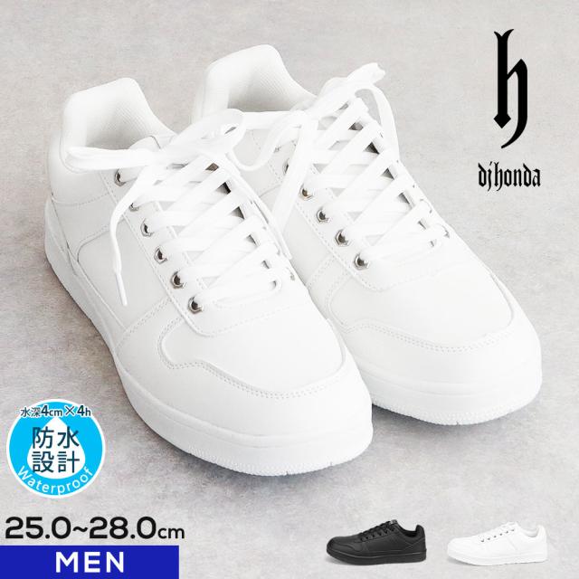スニーカー メンズ 白 防水 ローカット 無地 学校 通学 中学生 高校生 靴 防滑 ジュニア 通学靴 白スニーカー ウォーキング コートスニーカー 雨 ホワイト ブラック 黒 学生 運動靴 dj honda ディージェイ ホンダ DJ-310