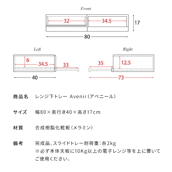 ■商品名:レンジ下トレー Avenir(アベニール)