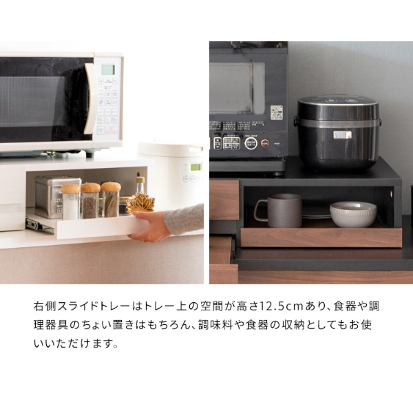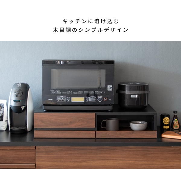 レンジ下トレー オーブンレンジ置き レンジラック キッチンキャビネット キッチンラック レンジボードスライドトレー スライドテーブル キッチン収納 引き出し 台所収納 炊飯器ラック 作業スペース キッチンテーブル ブラウン ブラック 完成品 組立不要 ホワイト