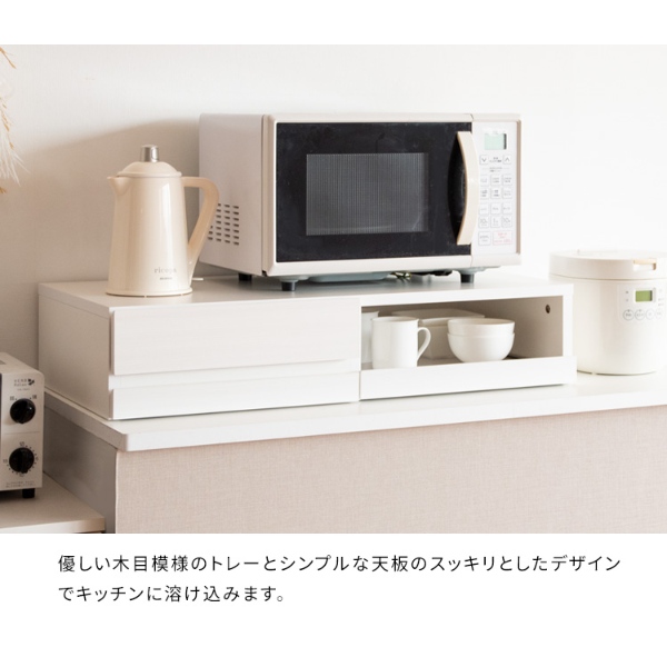 レンジ下トレー オーブンレンジ置き レンジラック レンジボード スライドトレー幅80×奥行き40×高さ17cm 引き出し付 完成品 ホワイト