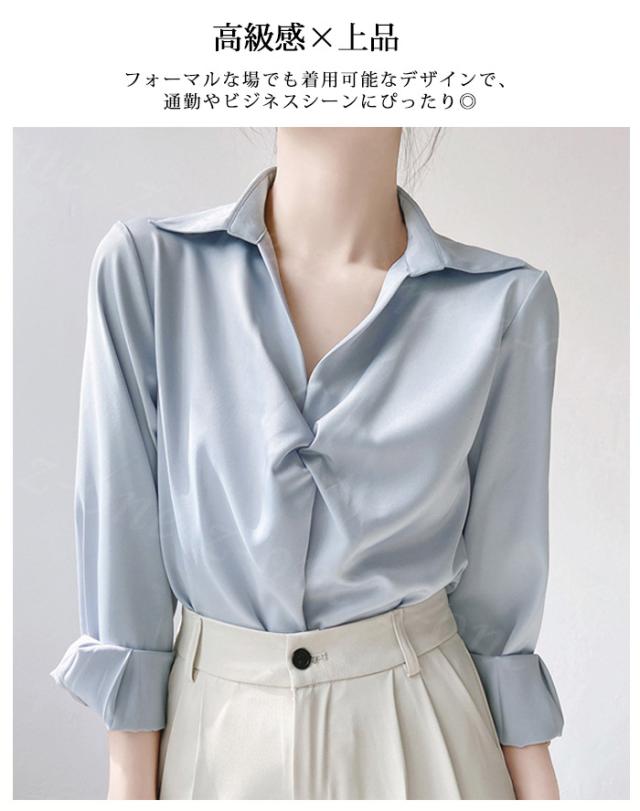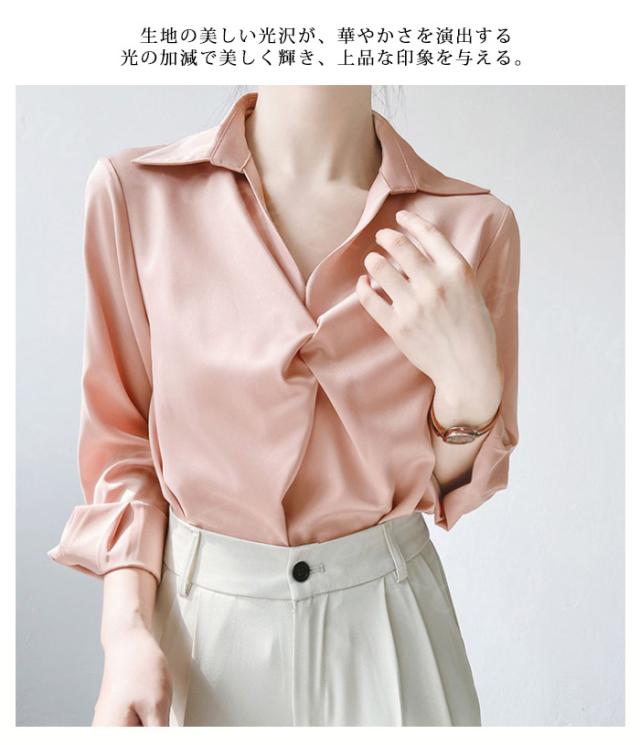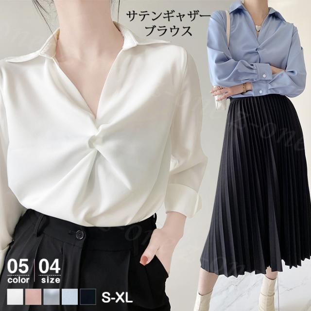 トップス シャツ ブラウス レディース サテン 長袖 光沢感 ギャザー ブラウス 春新作 送料無料 通勤 エレガント 洗練 シンプル 春秋 おしゃれ オフィス ビジネス シワになりにくい シルク 大人 OL カジュアル 入学式 入園式