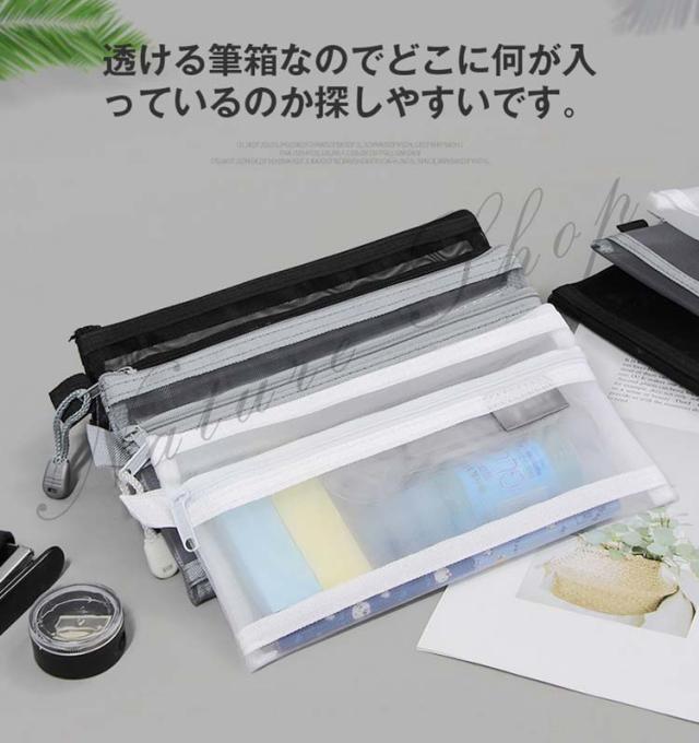 ペンケース 大容量 透明 メッシュ クリアペンケース かわいい 収納 ペンポーチ シンプル 筆箱 学生 中学生 大学生 高校生 受験 筆入れ 韓国 小物入れ 無地 入学祝い 女の子